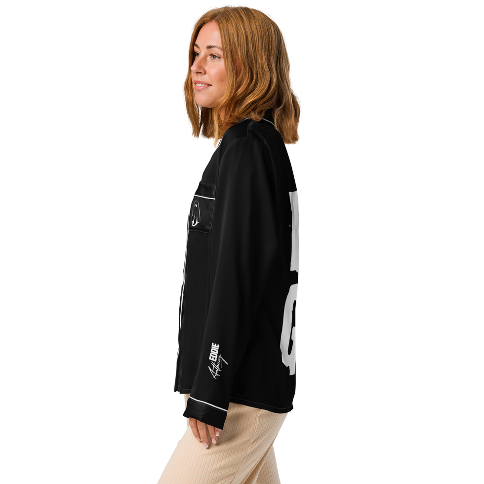 Perfect for cool nights, slow mornings, or just embracing a little self-care, this pajama top pairs beautifully with matching Alpha Ghost pants or shorts for a complete luxe look.